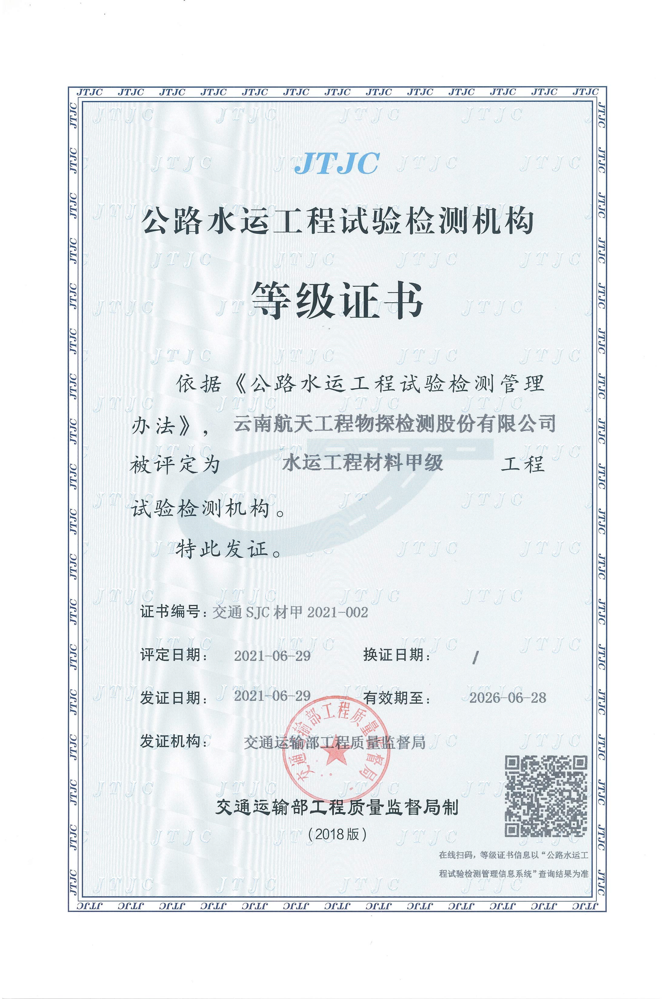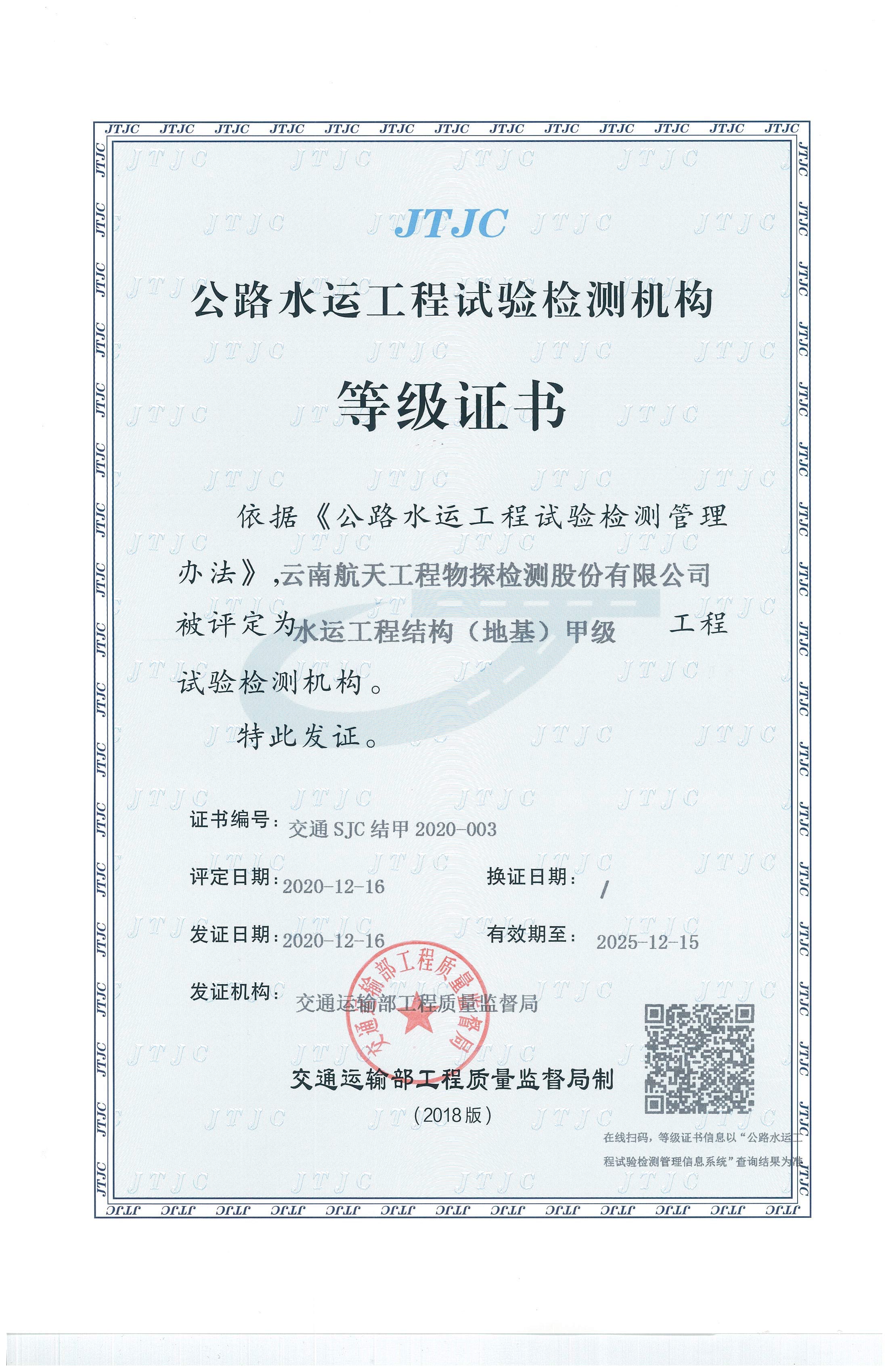 水利工程質量檢測單位資質等級證...